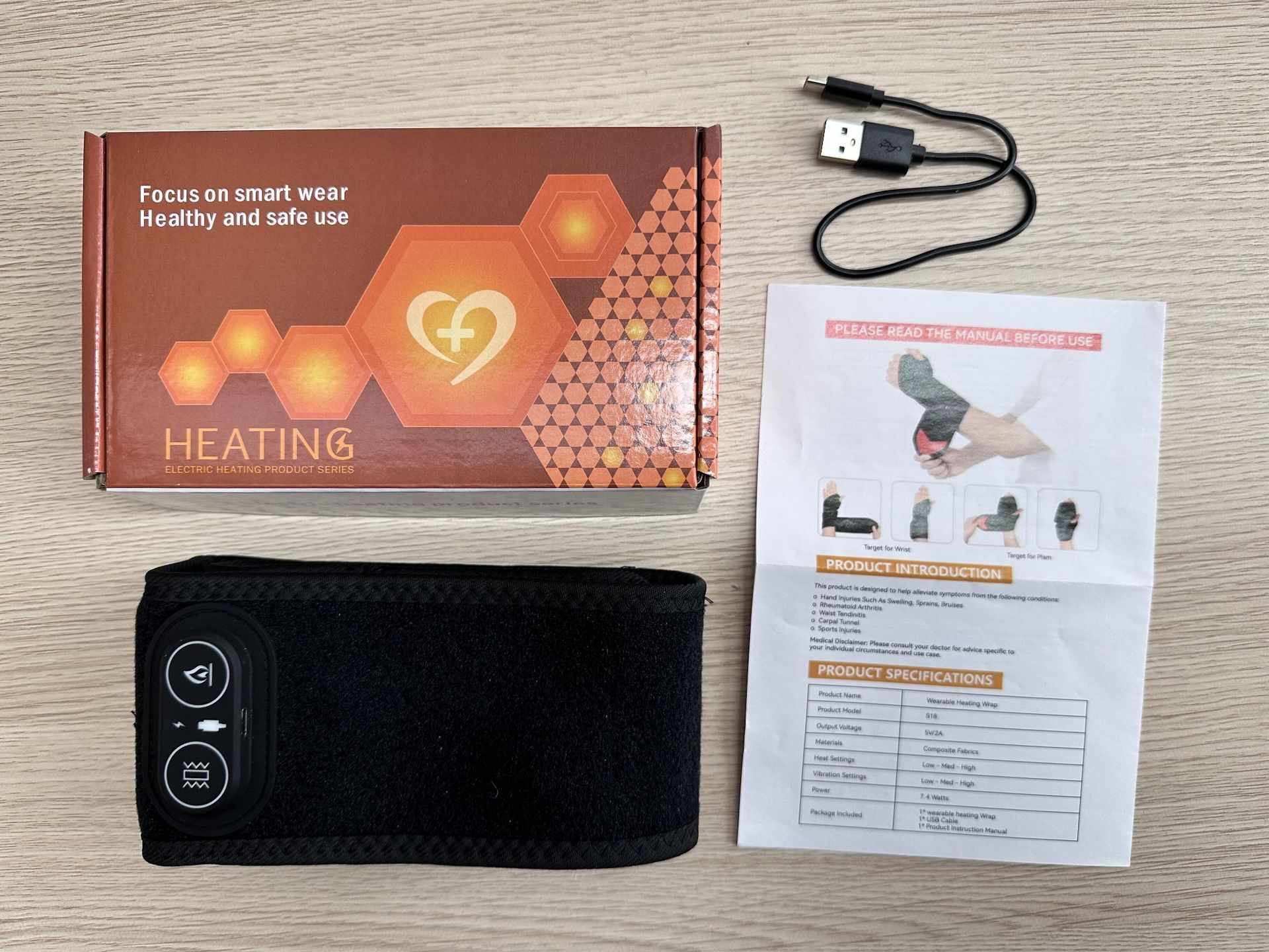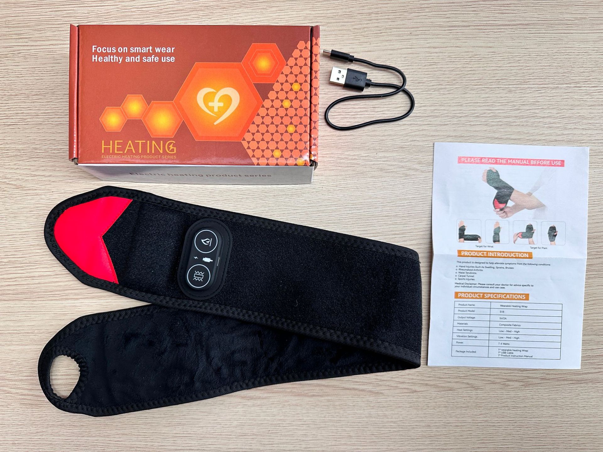 Red Light Therapy Wrist Wrap with Heat and Vibration
